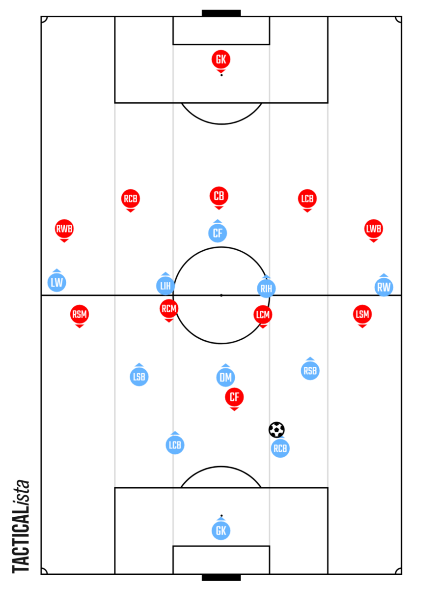 後ろの3枚が幅を取る3-2のビルドアップ。
